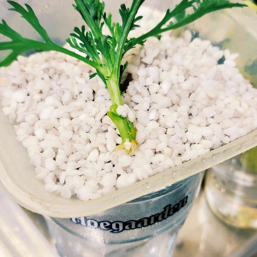 枝を折ってしまったマーガレットを真珠岩パーライト底面給水にて挿し芽。