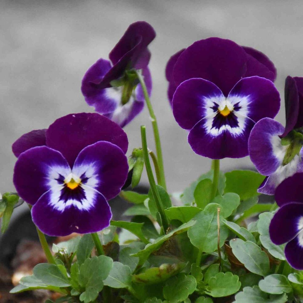 【研究学園の花々】2022年12月3日、カラオケバックス前の歩道花壇に植えたシックな色合いのビオラが元気に咲いていました!