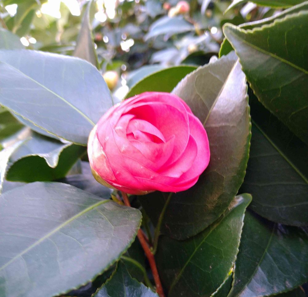 児童公園と集会所のフェンス際に沢山の椿の木が植えてあります