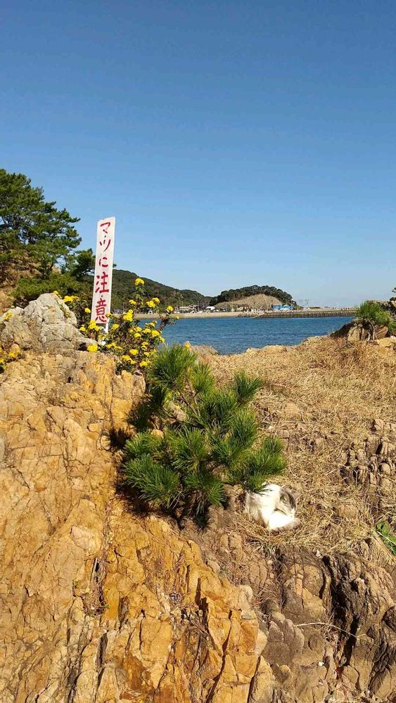 マツに注意の看板よりも 霊験あらたかな島をも越える神々しい昼寝ネコでした(笑)