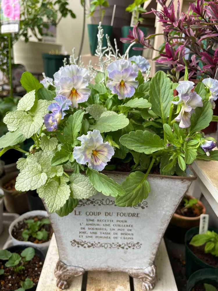 イリスプリエールをラミウムとプラチーナと合わせて植えましたが、水色から淡い紫になってきちゃった😅