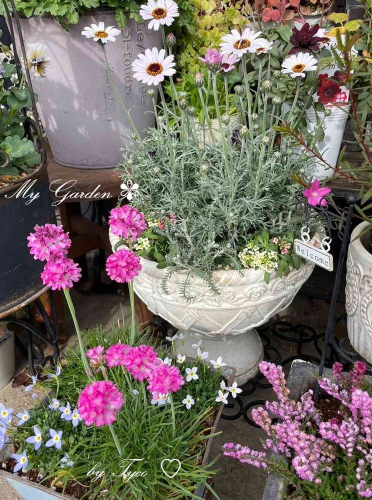 気分を変えて大好きなセマムや♥︎︎可愛いヒナ草♥︎︎アルメリア(ハマカンザシ)などで久し振りに寄せ植えてみました💓