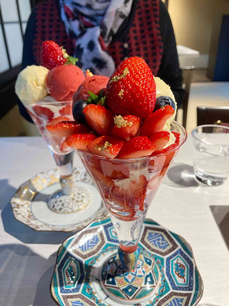 そうです✨✨九谷焼です😊金沢といえば九谷焼✨素敵ですよね💖リッチな気分で金箔付きのいちごパフェをいかがですか💖