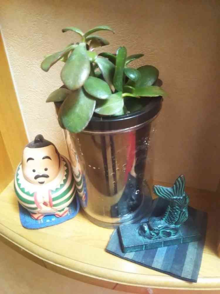 外は雨☔️⚡️注意報も発令中😅🙏「フチベニベンケイソウ」支倉常長さんと鯱文鎮(旧松山町(藩)・移動中落下)胡蝶蘭二重ケースに入れ一ヶ月、枯れずに成長してます、お二人のお陰です。家の中弁慶してます😶