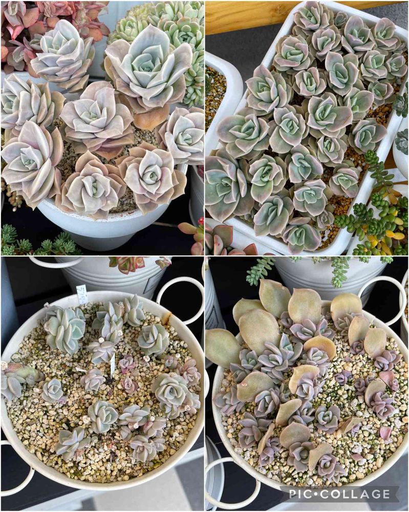 昨年2月に9枚、9月に8枚をモギモギ。置き場所ができたので今年2月にブリキ鉢に鉢上げ。そこそこ育ったんで9月にミニプランターに仕立て直してカット挿ししてます。10月投稿の時はまだスカスカだったけど、この2ヶ月でええ感じに💕もうほとんど土が見えなくなってきました😆