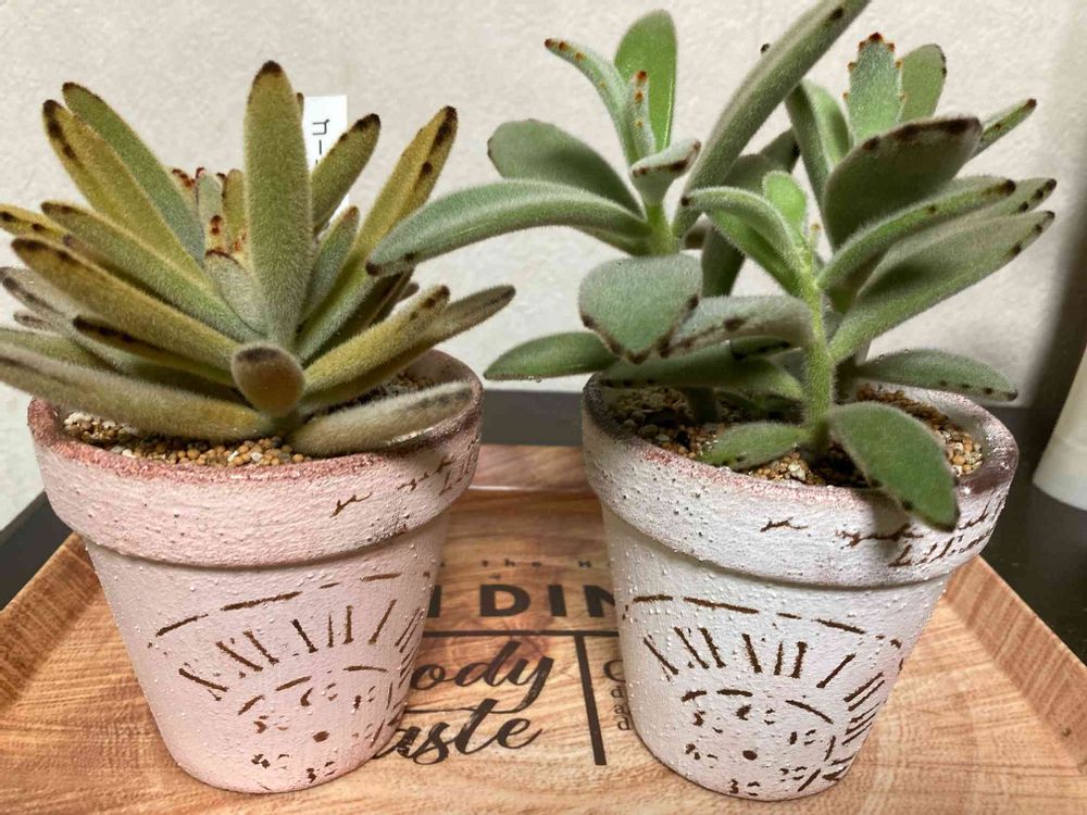 植え替え記録です🌸月兎耳は1ヶ月くらい前に、ゴールデンラビットは2週間くらい前にお迎えしました😊メルカリで可愛いリメ鉢をゲットしたので、植え替えましたー☺️北海道は冬は室内のものばっかりになってしまいますね💦