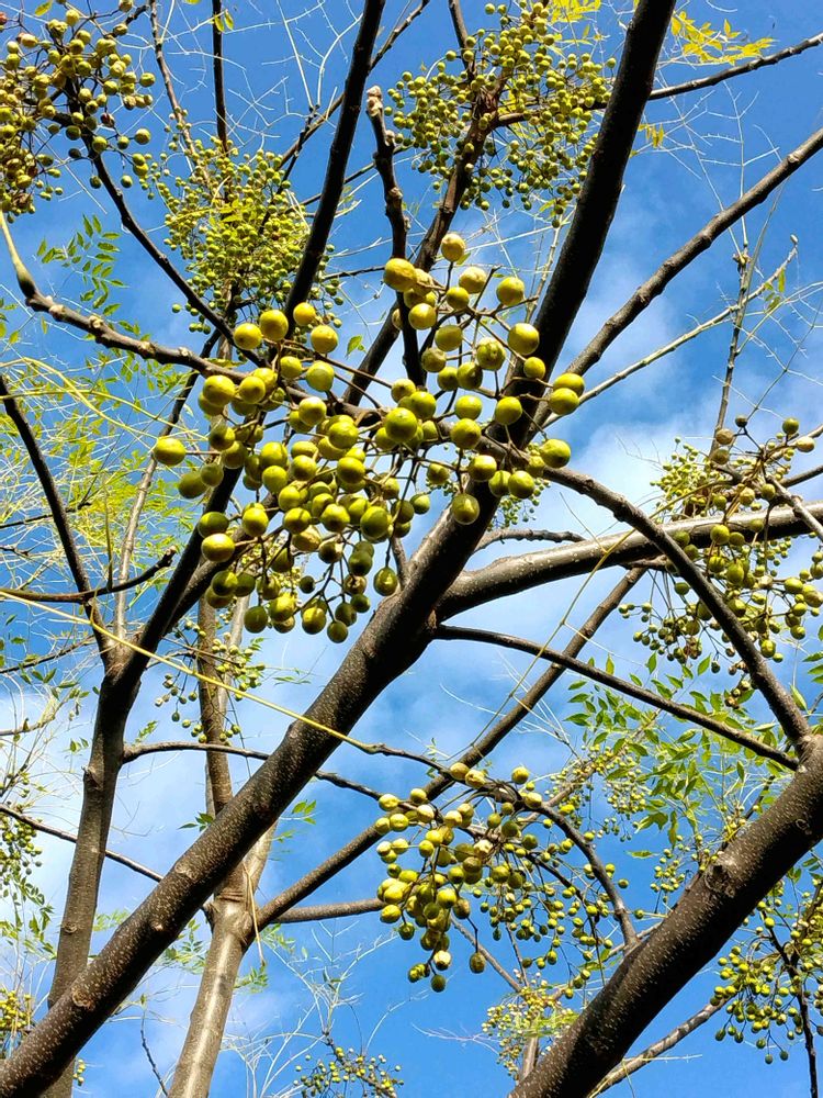 空を見上げたら、センダンの緑色の実がたくさん見えました🎶 少し前は、実と同じ色の葉っぱ🍃が付いていたので、実はあまり目立ちませんでした😅