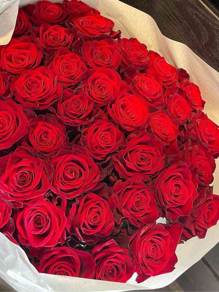 お花屋さんで仕入れたばかりのバラがありました。だいたい50本くらいかな?