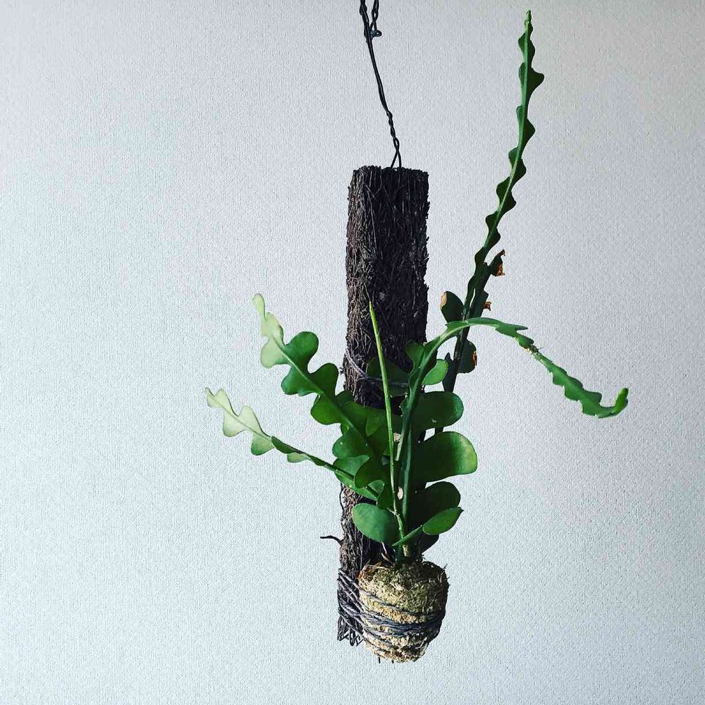 これは水苔で根を包んでヘゴに巻きつけてます。