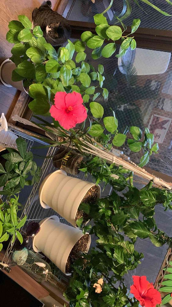プア🐈🐾ちゃんとハイビスカス🌺のコラボです😭💕💕