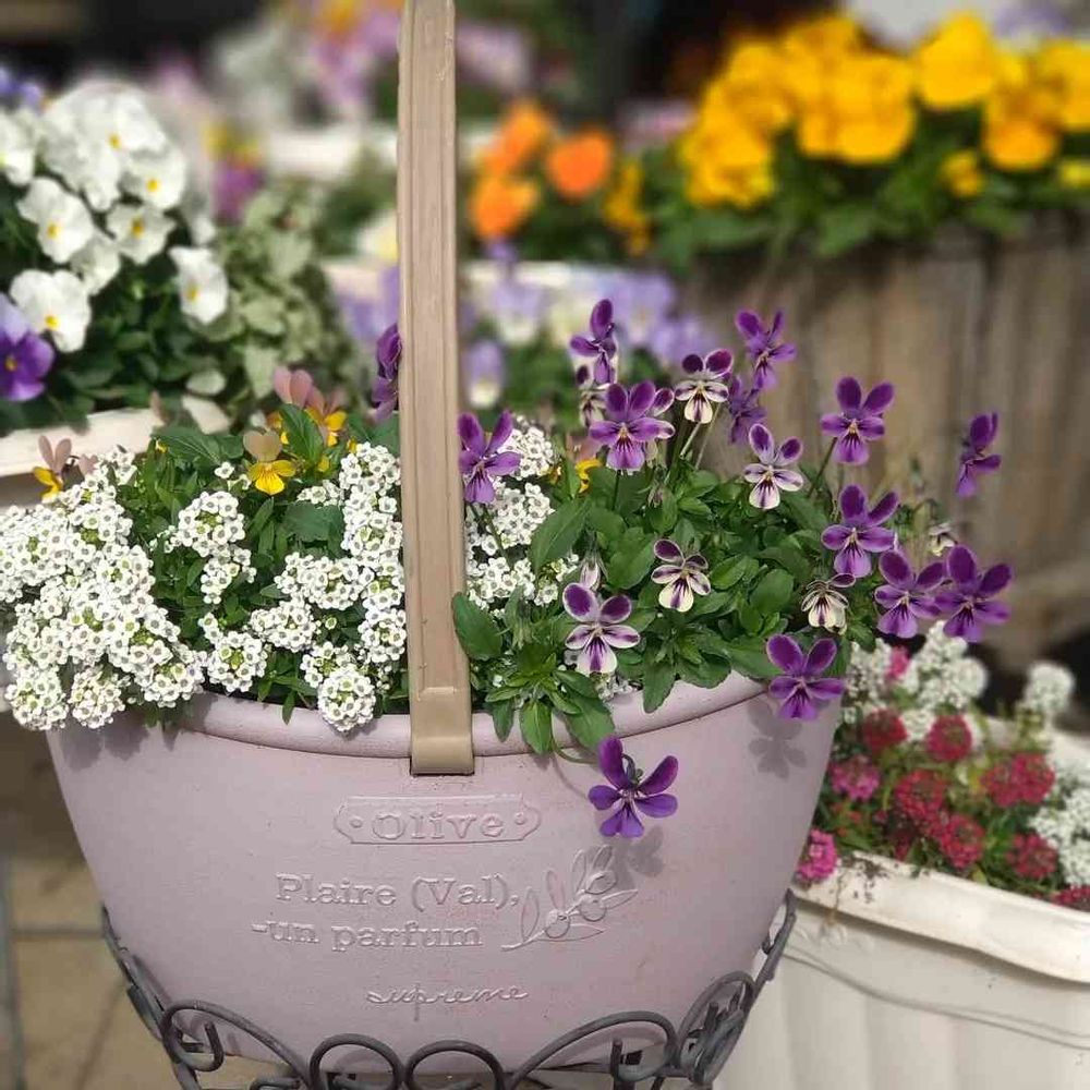 少し前に植えた寄せ植えです💜🤍💜🤍