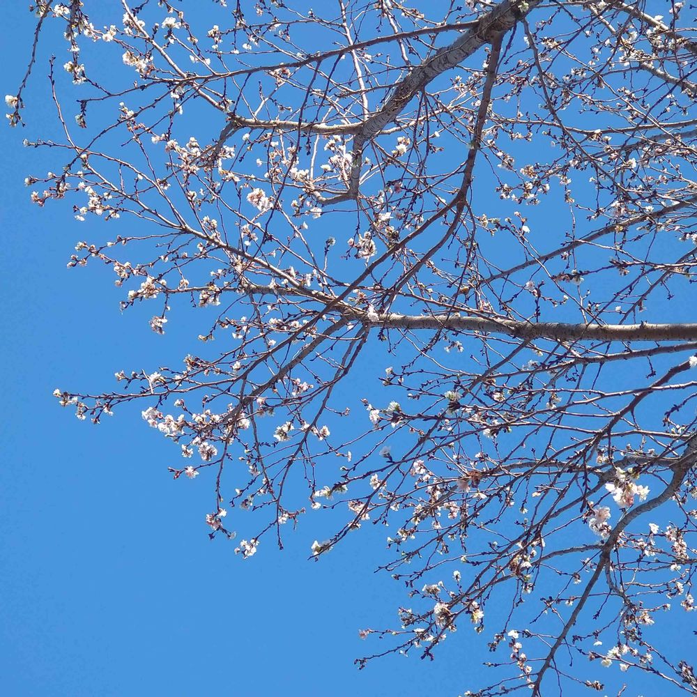 冬桜は小さいのね。綺麗です。寒さに負けず青空に向かっているのがすてきです。