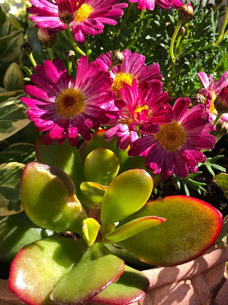 バルコニー/ベランダ,金のなる木,斑入りニチニチソウの投稿画像