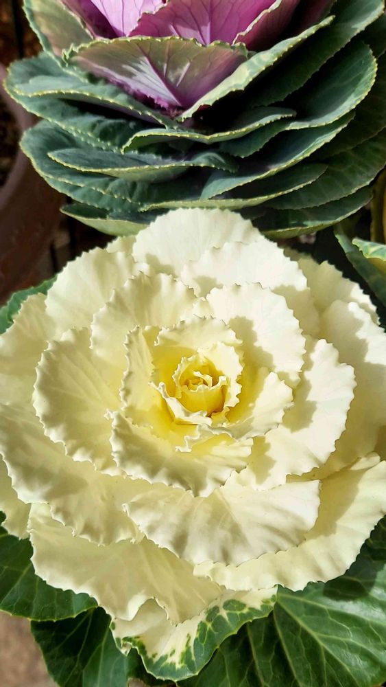 こんばんは✨白くてキレイな葉牡丹ですね\(*ˊᗜˋ*)/💚私も前に白い葉牡丹育ててとても綺麗で良かったです😊🌱寒くても元気なのがいいですね😉🌱