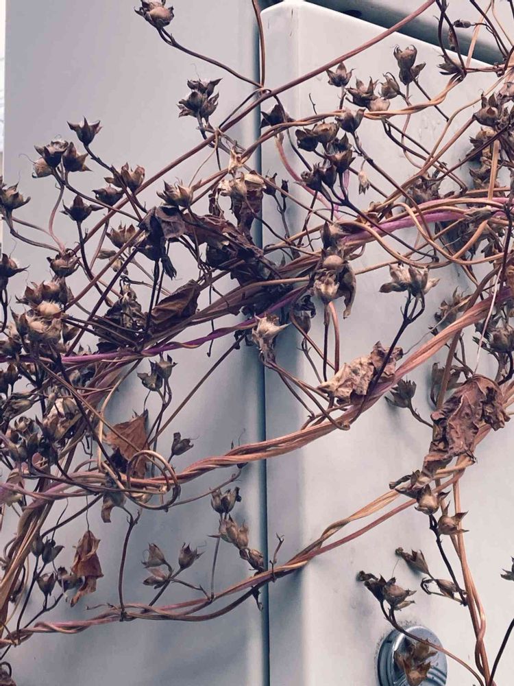 街灯の分電盤に絡み付いたマメアサガオが沢山の種を付けていました。