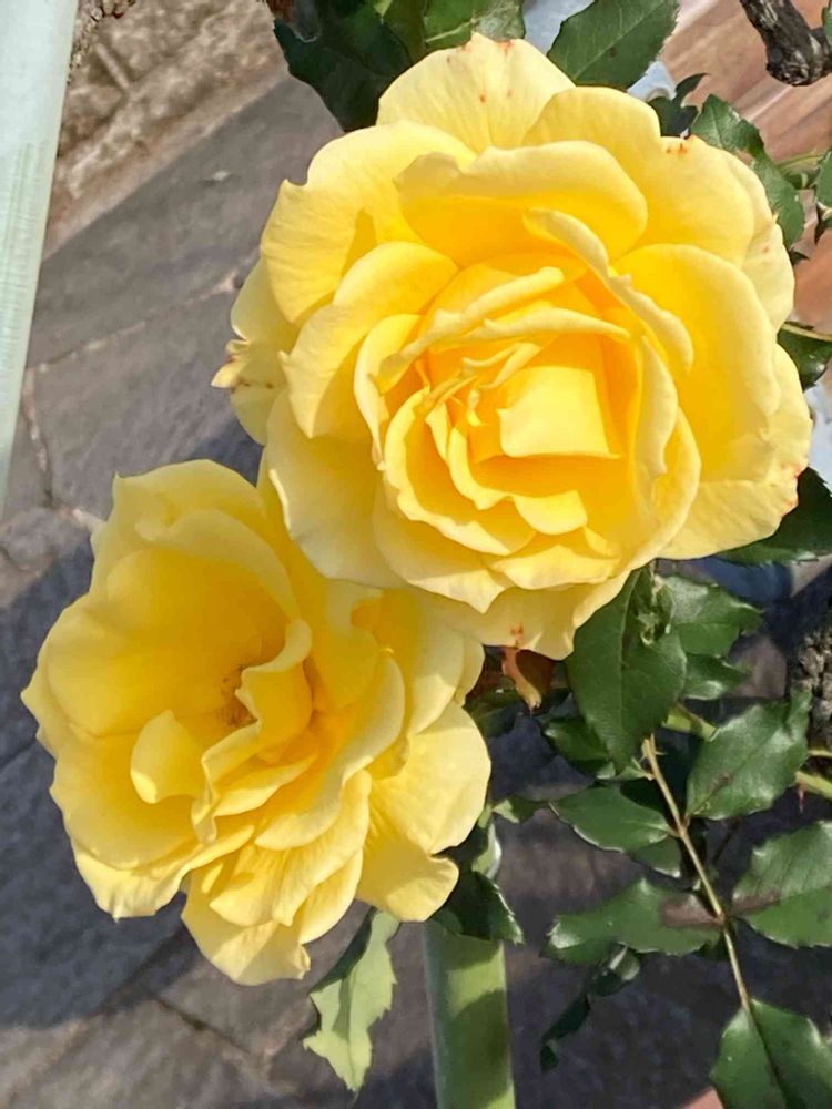 寒気の中、大輪の黄色いバラが綺麗に咲いていました🌟