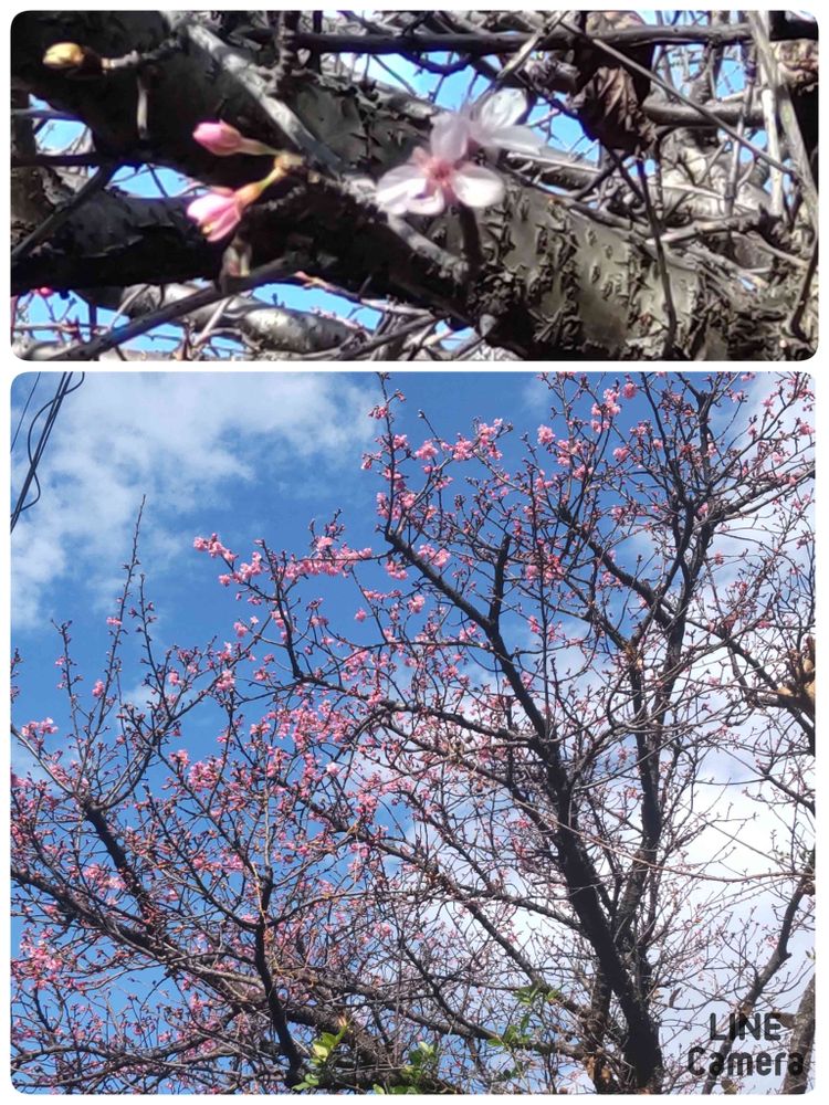 今日昼頃、初詣に行く時咲いている桜のところへ見に行ってみました。