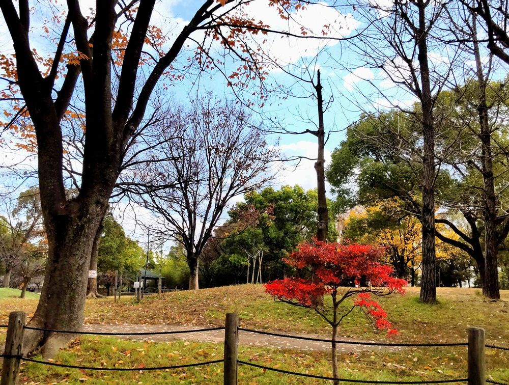 ドウダンツツジがすてきな色合いになりましたが、イチョウやケヤキは落葉しました。