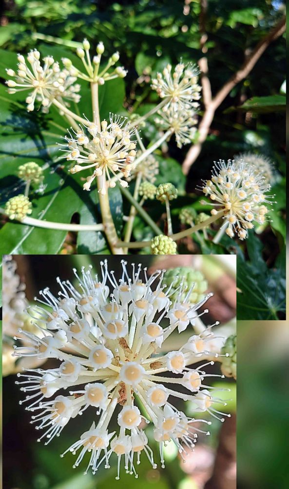 ヤツデのお花は雌雄あるですね🌿⚪🌿