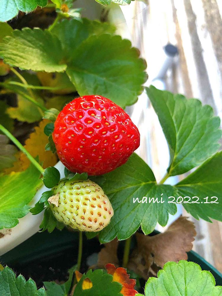 2023/12季節外れの小さなイチゴ🍓が実った。食べるには小さい。🍓から種を取って蒔いて育てた記録です。 ⚠️私がいちご🍓の種と思っていたツブツブは種ではなく、その中に種が入っていると知りビックリ。追記してます🙏。