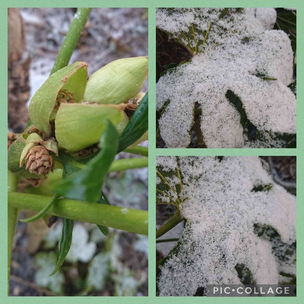 ヤツデの上に砂糖みたいな雪が積もったんですね。😊