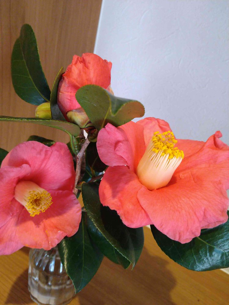 玄関でも暖かいんですね〜‼️つばき…咲いちゃいました🌼