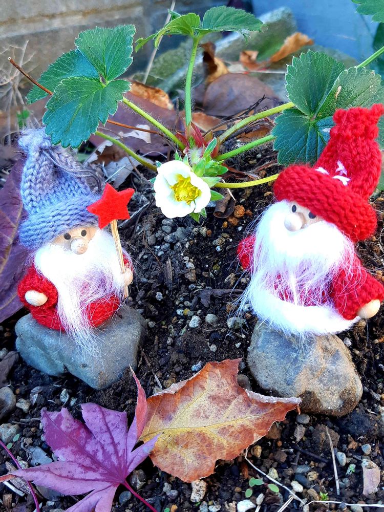 苺の可愛いお花が咲いてきましたクリスマスには間に合わないないけどお庭で寒さを忘れて朝からワクワクしました🎵