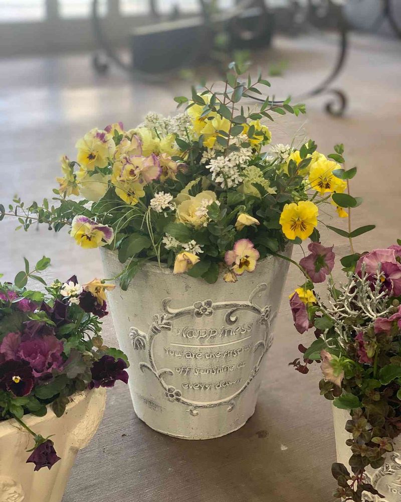 お客様お持ち込みの鉢にギャザリングしました♪ ご予算ご用途に合わせて寄せ植えお造りします(*≧︎∇︎≦︎)
