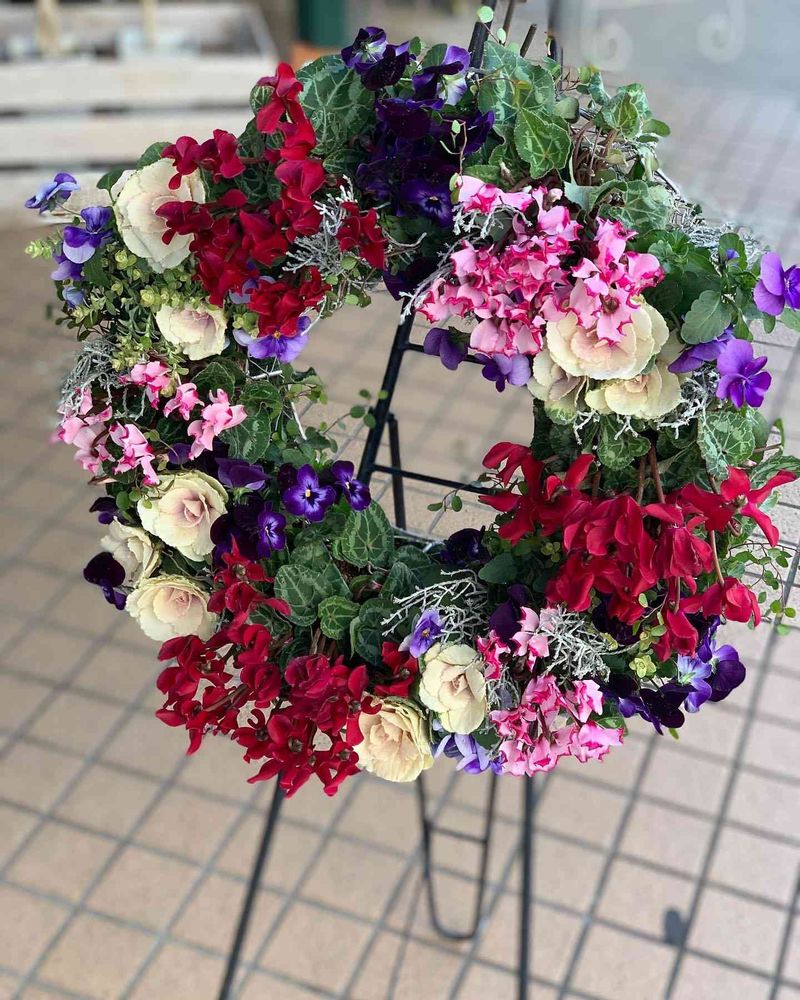 ご注文頂きましたシクラメンのギャザリングリースです♪ おリボンお付けしてお渡ししました🎀