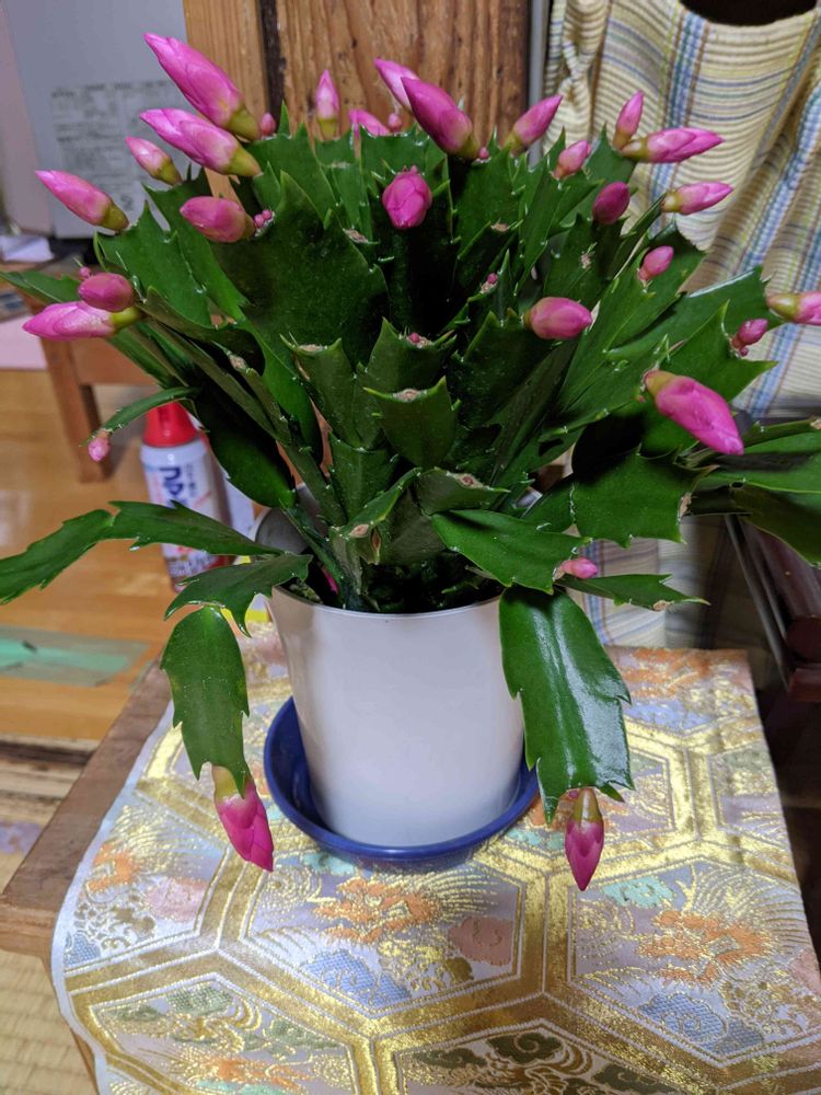 340円で昨日、買ってきたジャコバサボテンです。蕾が沢山付いてます。仏壇前の飾りにしました。お正月位には、花が咲いてくれたら、見応えあります。