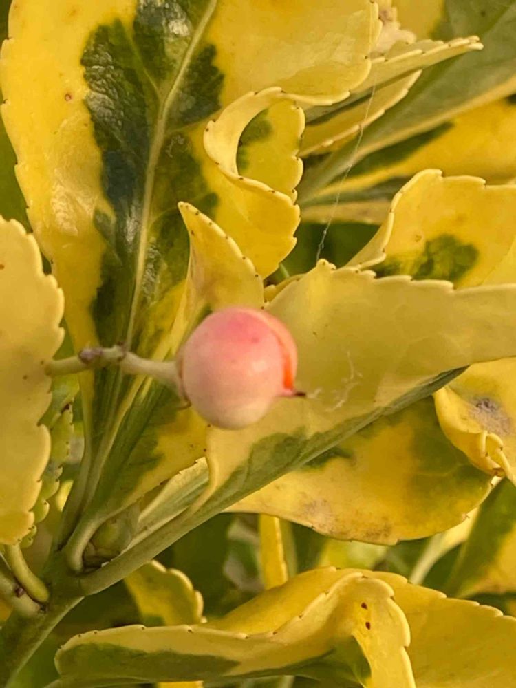 葉っぱは斑入りで、ちょうど黄色が多い所に実がなってたから😆