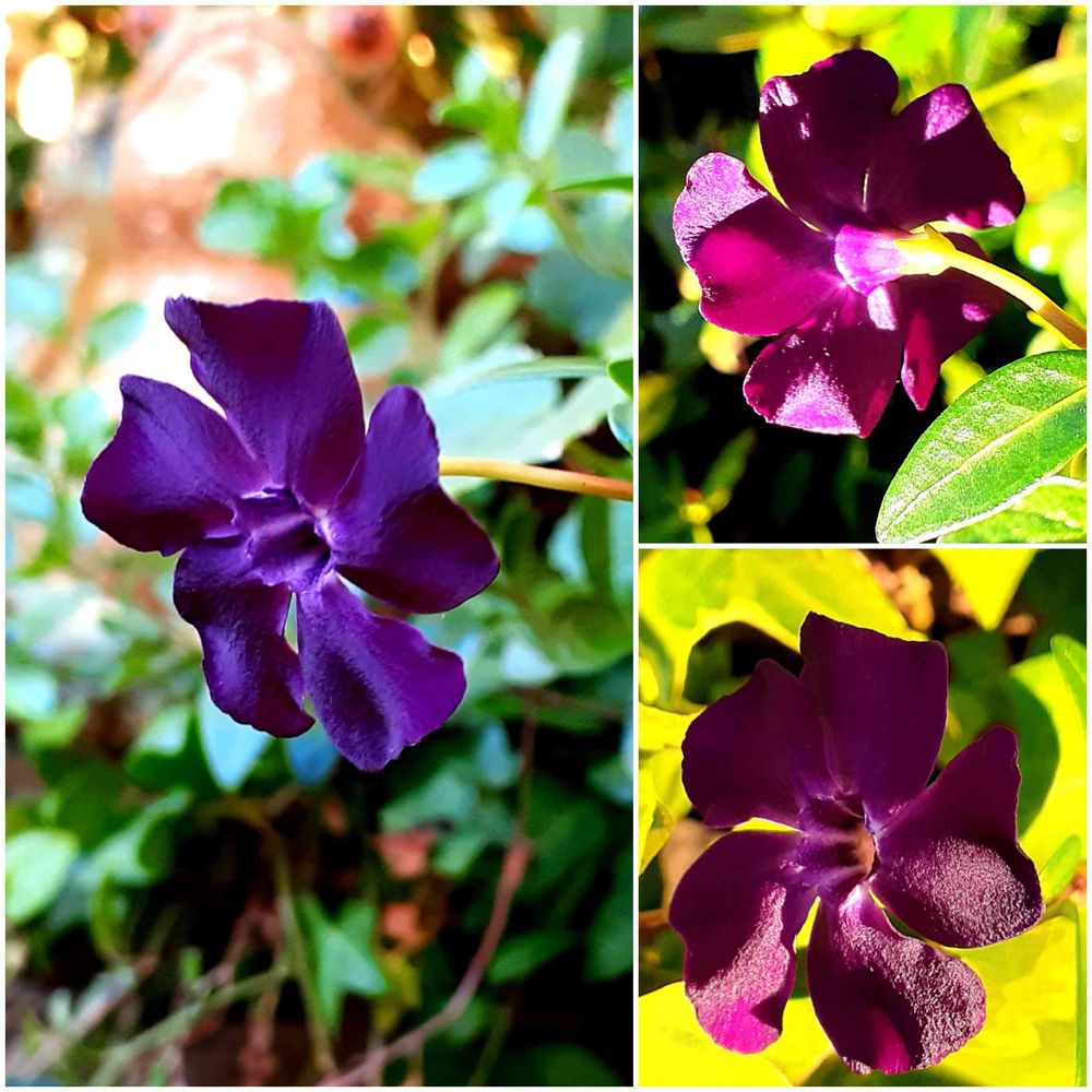 ビンカミノール アトロプルプレアが咲いていました。角度と陽当たりでワインカラーに。(2.5~3㌢程)