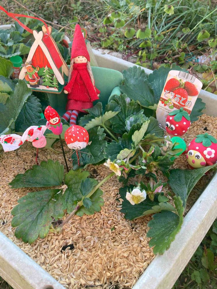 イチゴのお花、可愛らしく咲いていますね。実も出来ていますね👍️