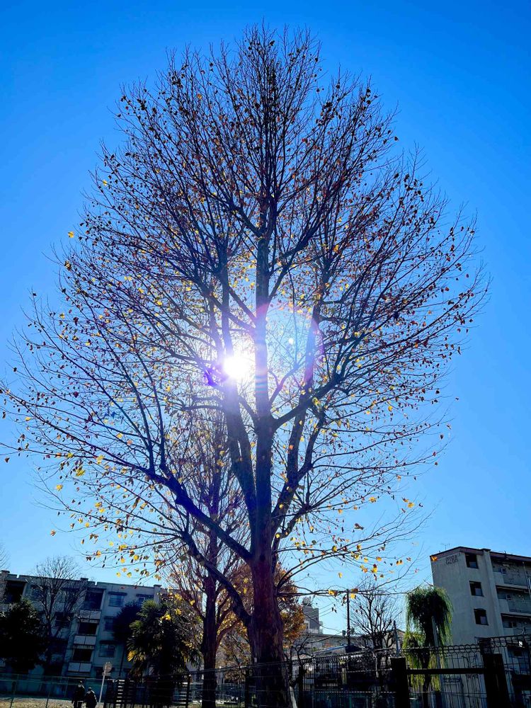 見に行ったら、もう葉が落ちてスカスカでしたが、太陽が中に入って✨キラリ✨と綺麗に撮れました。