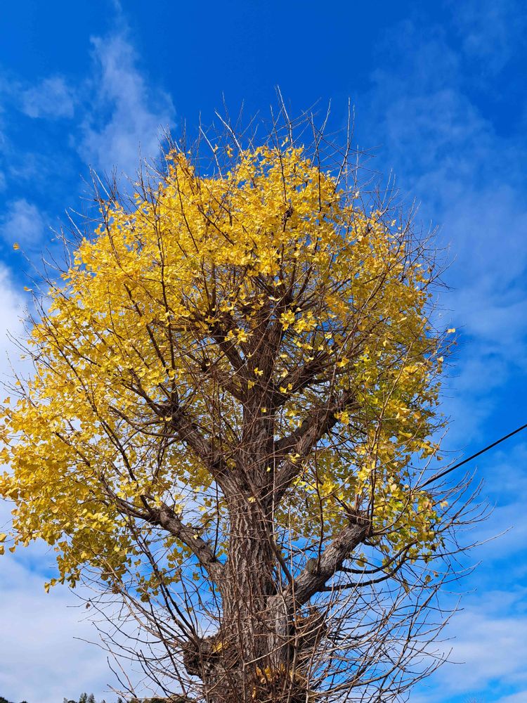 樹齢どれ位か分かりませんが、古いイチョウの木です。見上げたら、🟦青空。 こんだけ大きくなってくると、段々、伐採される運命にされてく大木が多い気がする。場所をとるし、落葉の始末とか面倒という御時世?に、なって来ちゃってるんかなぁ〜💦
