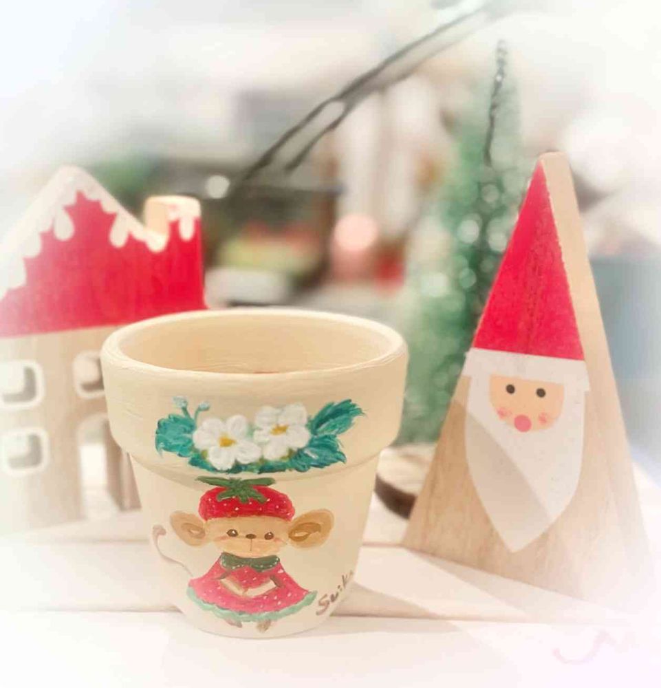 イチゴ&🐹ちゃんのリメ鉢可愛い〜🍓
