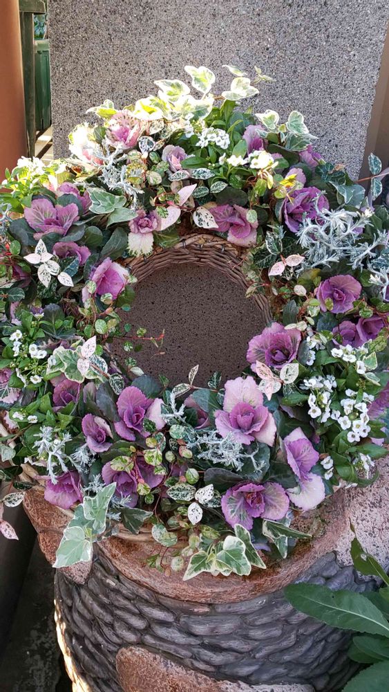 小さな庭,ギャザリング,ハボタンのリースの投稿画像