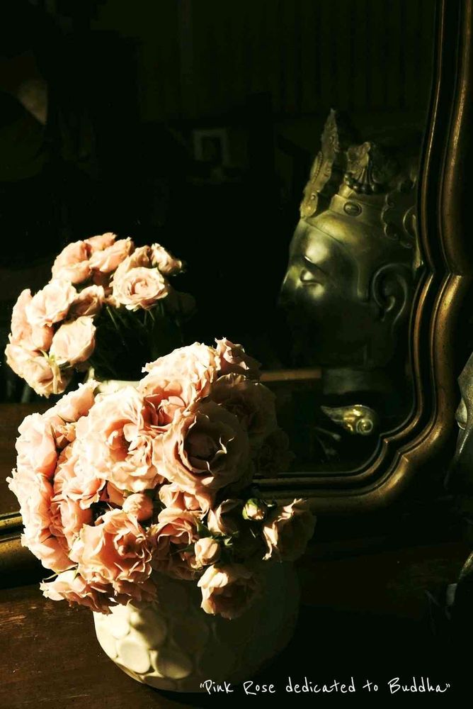 ピンク色のスプレーローズを買ったので大好きな仏陀とコラボしてみました。😌