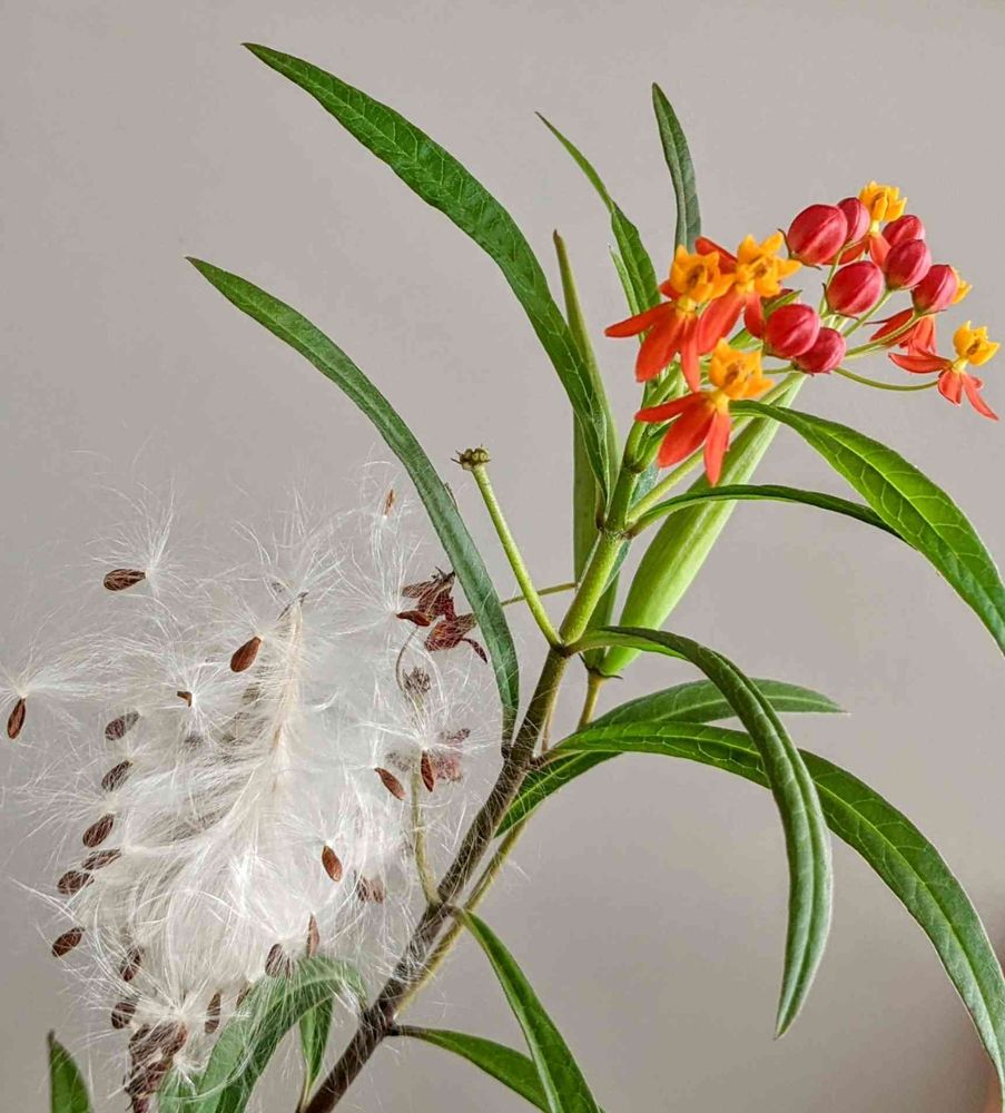 このアスクレピアスは寒さに弱いコンロンカの鉢に種が落ちて成長したのでコンロンカと一緒に家に入れました🤍⭐🤍⭐🤍