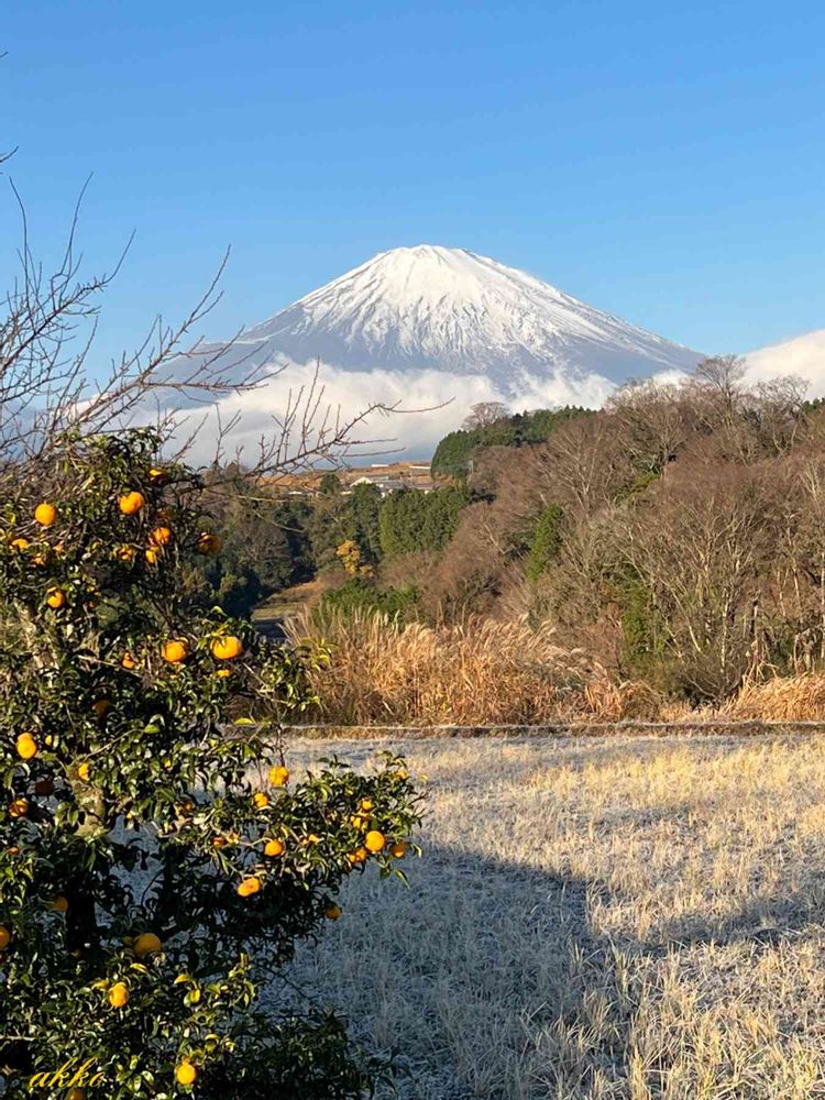 柚子が暗くなって、映えなかったらしいので、今朝は朝日が柚子に差して明るく撮れるうちに🗻とコラボです❣