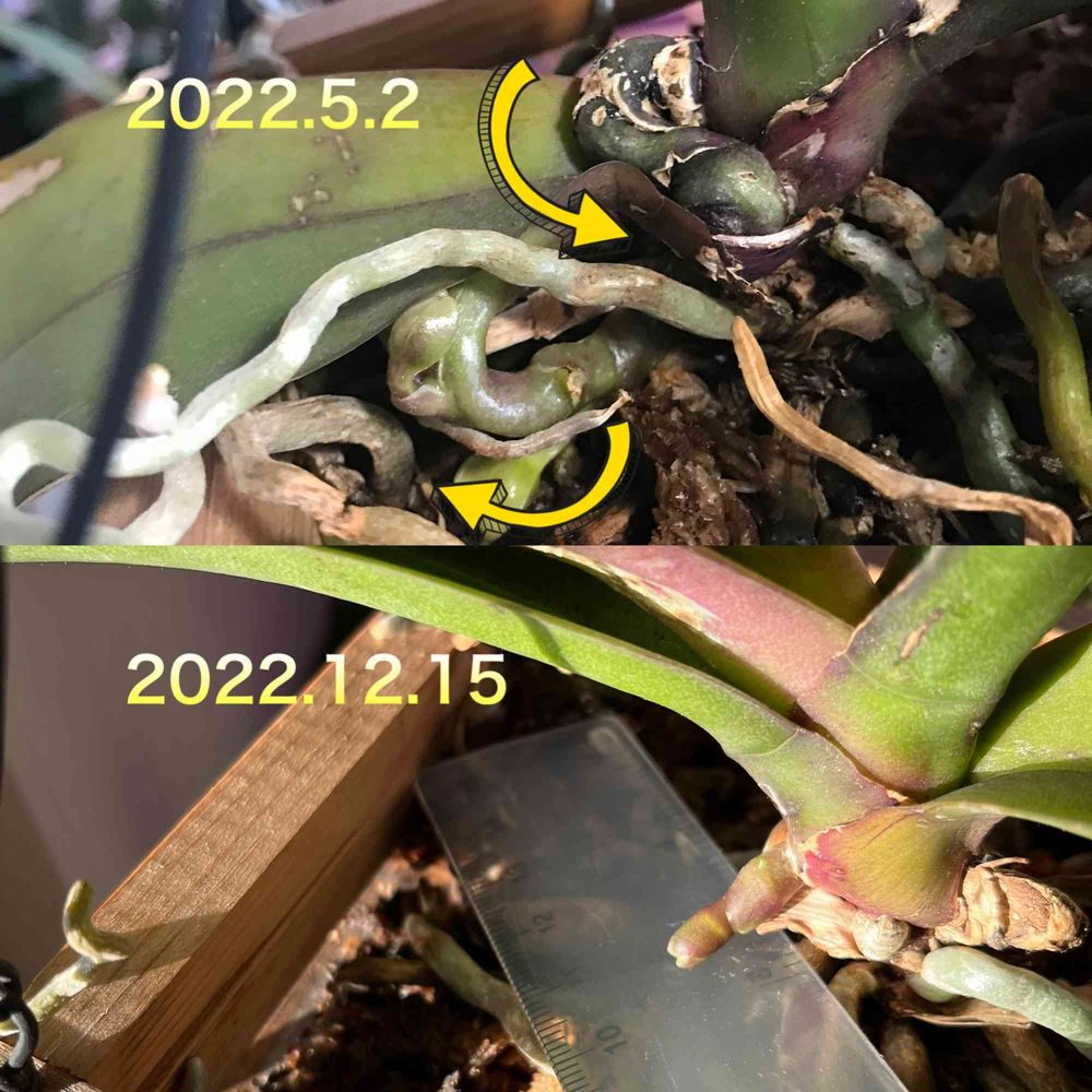 こちらはアップしなかったのですが、花芽が出ましたが下向きに伸びていき、矢印のようにぐるっと埋まっていってしまいまた下の方から出てきて蕾がつきましたが結局は咲きませんでした、、