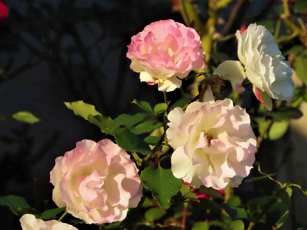 劇団の入口にある花壇で、日差しに照らされたバラがとても綺麗に見えました。 パチリ
