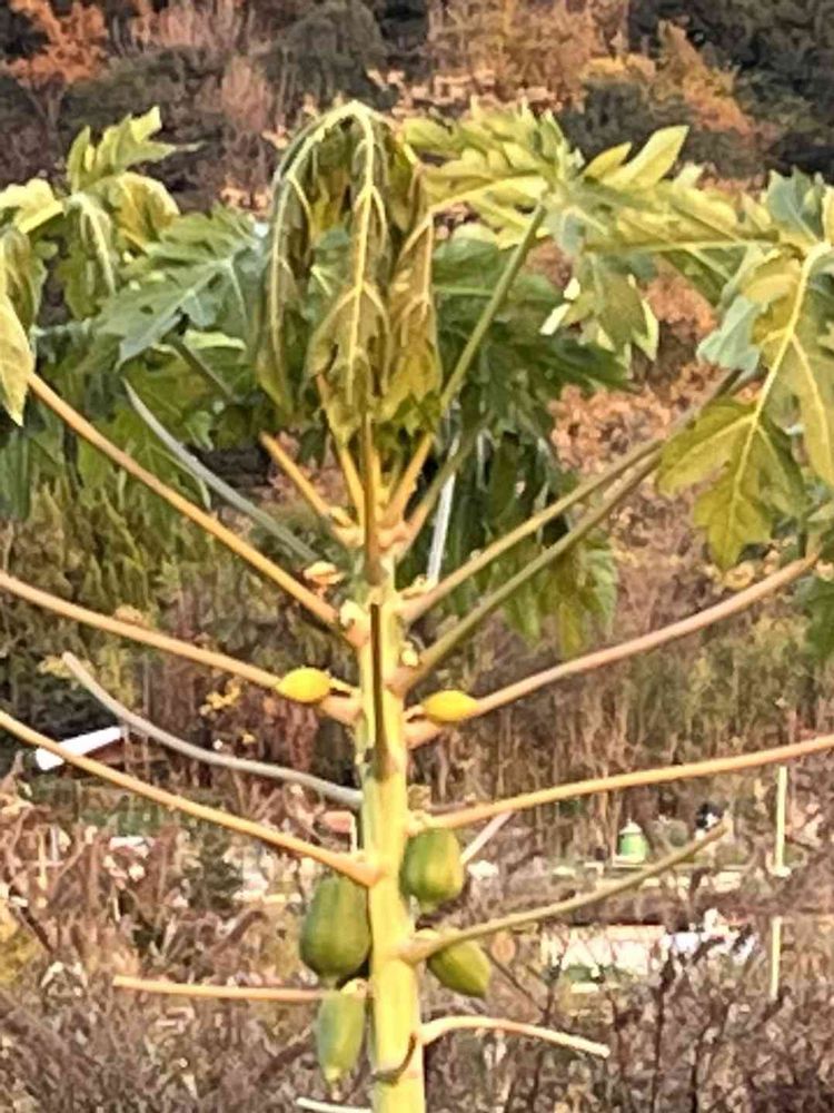 散歩の畑でなにかなぁ?と思いました。調べてみましたら🔍なんとパパイヤでした