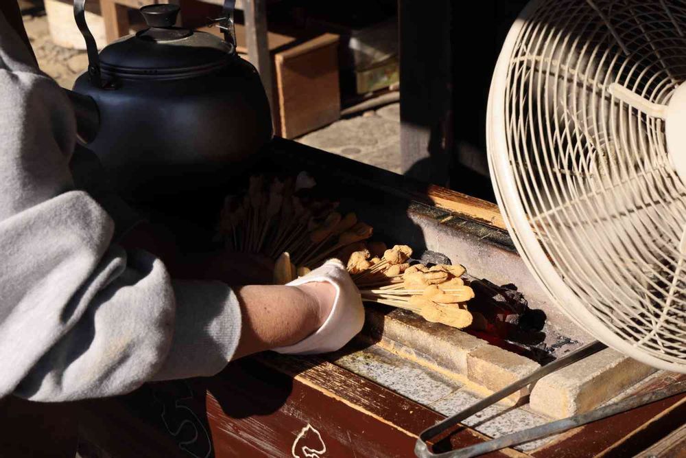 そして、絶妙な甘さの特製白みそだれを絡めて仕上げたのが、今宮神社の名物あぶり餅です。