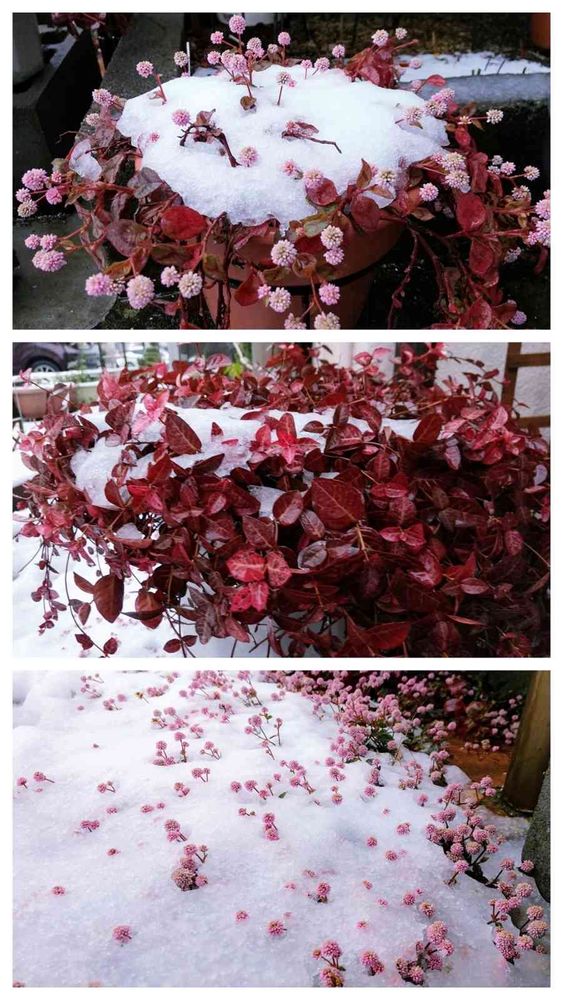 白い雪から顔だしてるヒメツルソバ、可愛いしね🤗