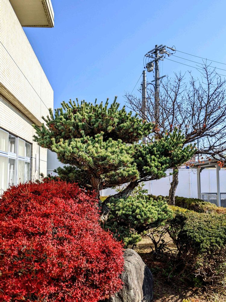 真っ赤🍁に燃えるドウダンツツジが 目を引きます。奥に松🌲