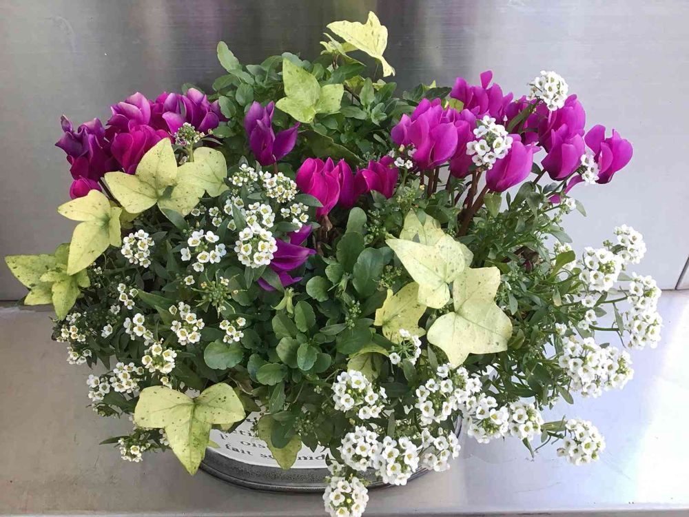 職場で活動している園芸部の部長がこしらえたアレンジメント💐