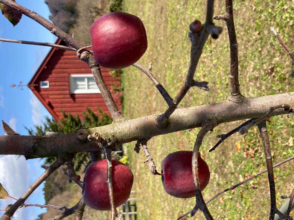 こんばんは😊絵本や物語に出て来そうな風景にほっこり癒されます。中之条ガーデンズ、リンゴ🍎と赤い小屋🛖
