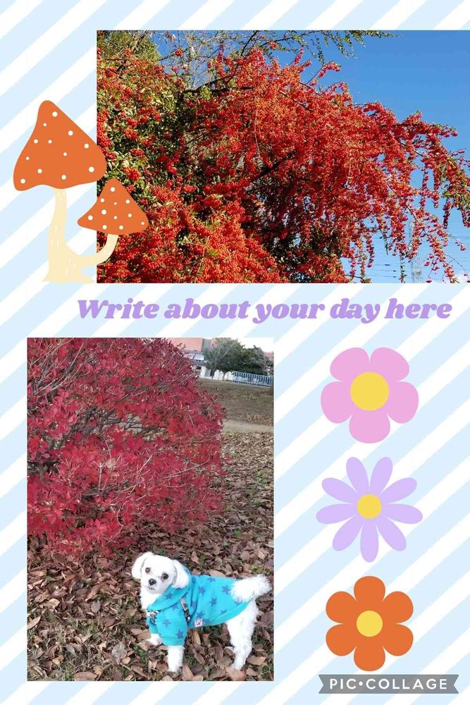 ドウダンツツジの赤、レオくんのウエアとで映えてますね〜🥰