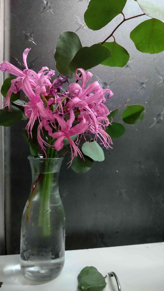今朝の、キッチンフラワーポポラスと、もう終わりの、ダイヤモンドリリー💗💚